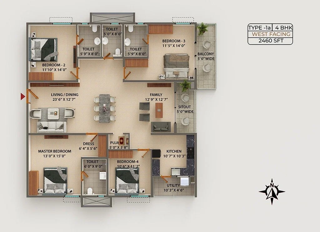 Designed to provide the utmost luxury and unmatched ease of living, the high life at Ramky One Astra begins the moment you step into the community and pass through the lush green exteriors. Indulge in a world of futuristic and thoughtful amenities crafted to provide unparalleled living experiences in every walk of life. With its green surroundings and modern amenities, Ramky One Astra apartments in Kokapet provide for an ideal gated community for those seeking a serene and peaceful lifestyle in the heart of the city. Begin your journey towards an elevated lifestyle by owning one of our luxurious 3 BHK or 4 BHK flats for sale in Hyderabad.