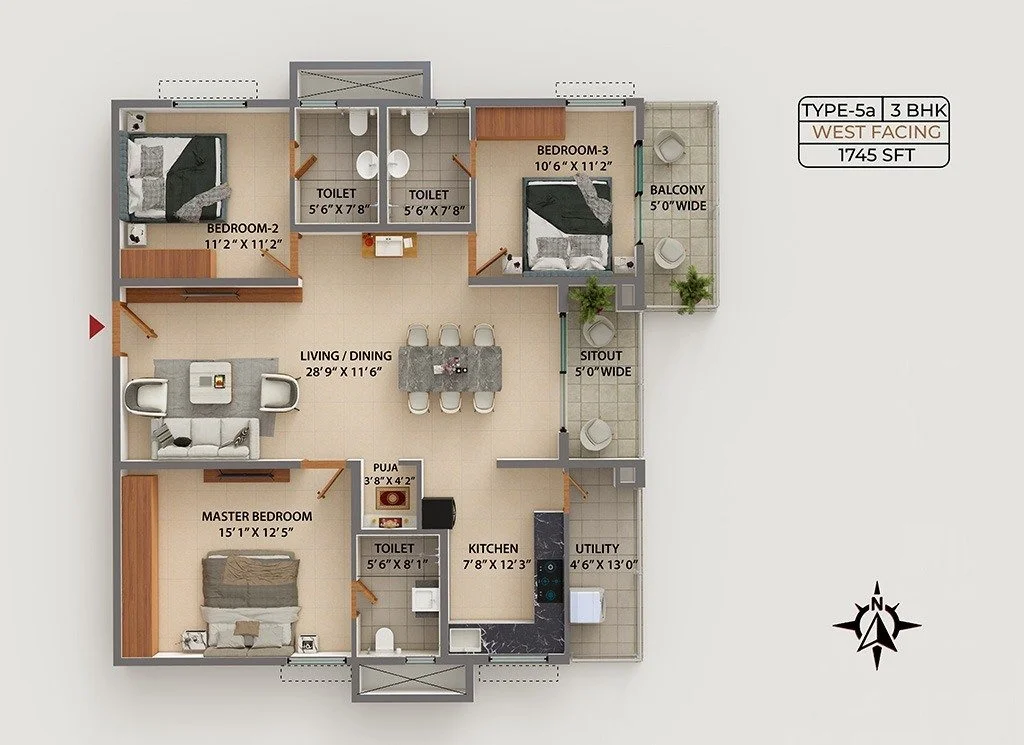 Designed to provide the utmost luxury and unmatched ease of living, the high life at Ramky One Astra begins the moment you step into the community and pass through the lush green exteriors. Indulge in a world of futuristic and thoughtful amenities crafted to provide unparalleled living experiences in every walk of life. With its green surroundings and modern amenities, Ramky One Astra apartments in Kokapet provide for an ideal gated community for those seeking a serene and peaceful lifestyle in the heart of the city. Begin your journey towards an elevated lifestyle by owning one of our luxurious 3 BHK or 4 BHK flats for sale in Hyderabad.